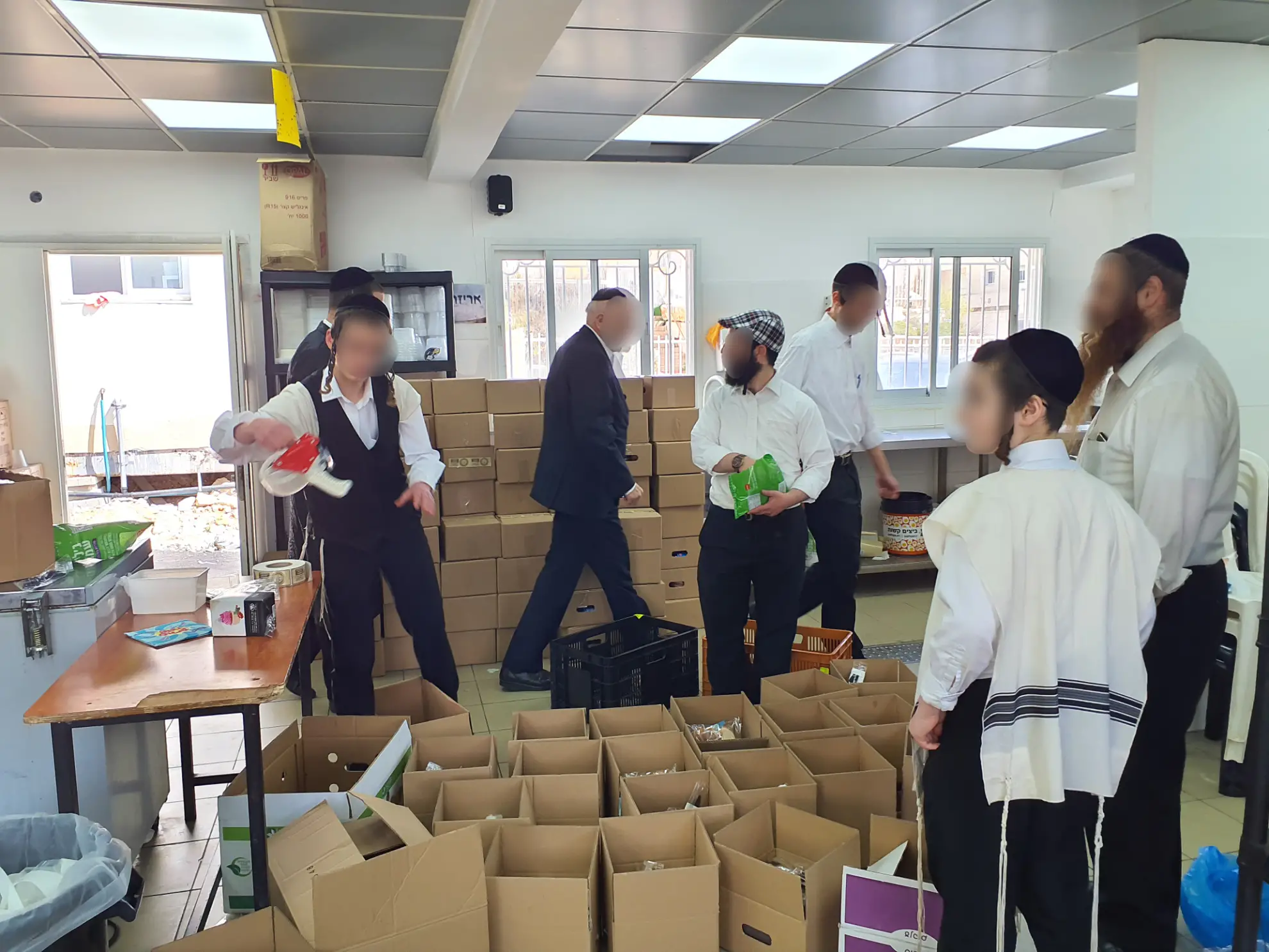 לפתע נכנסו מתנדבי 'חסדי אי"ש', עם משלוח מנות מהודר ומגילה.