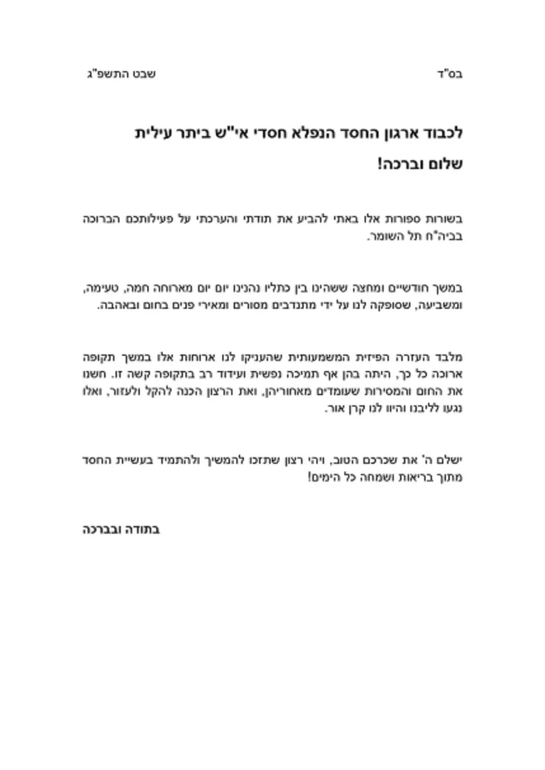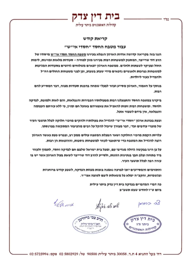 חסדי אי"ש היא הכתובת הראשונה לעזרה בעיר