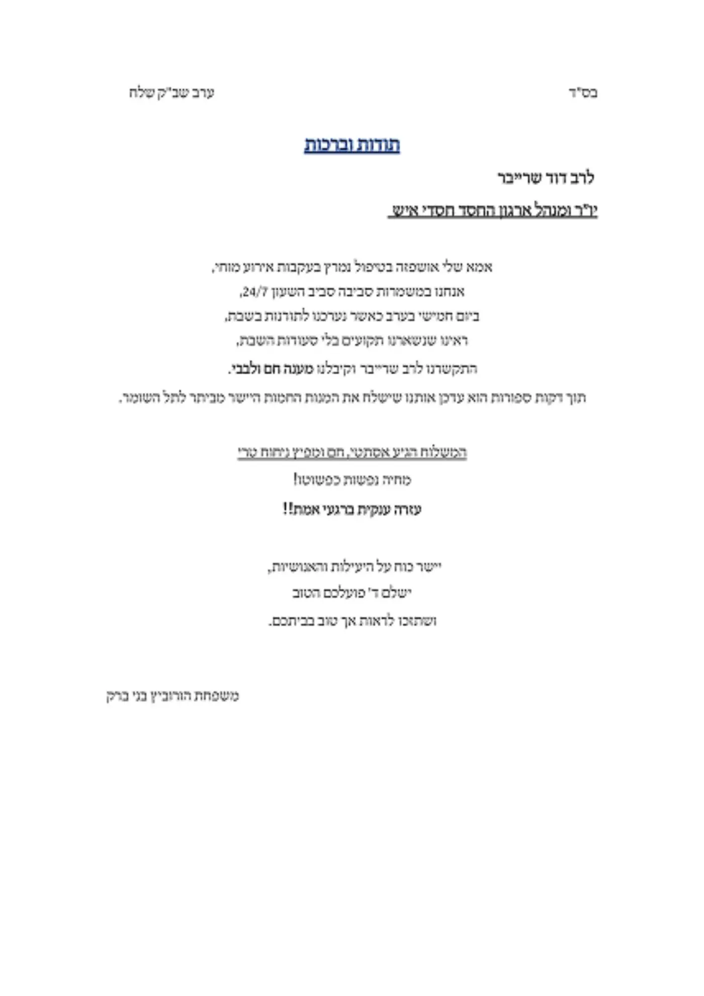 חסדי אי"ש היא הכתובת הראשונה לעזרה בעיר
