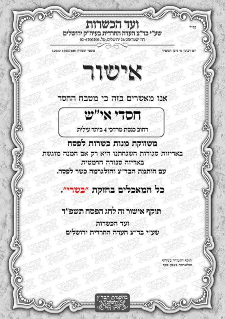 מטבח כשל”פ בכשרות צמודה של העד”ח